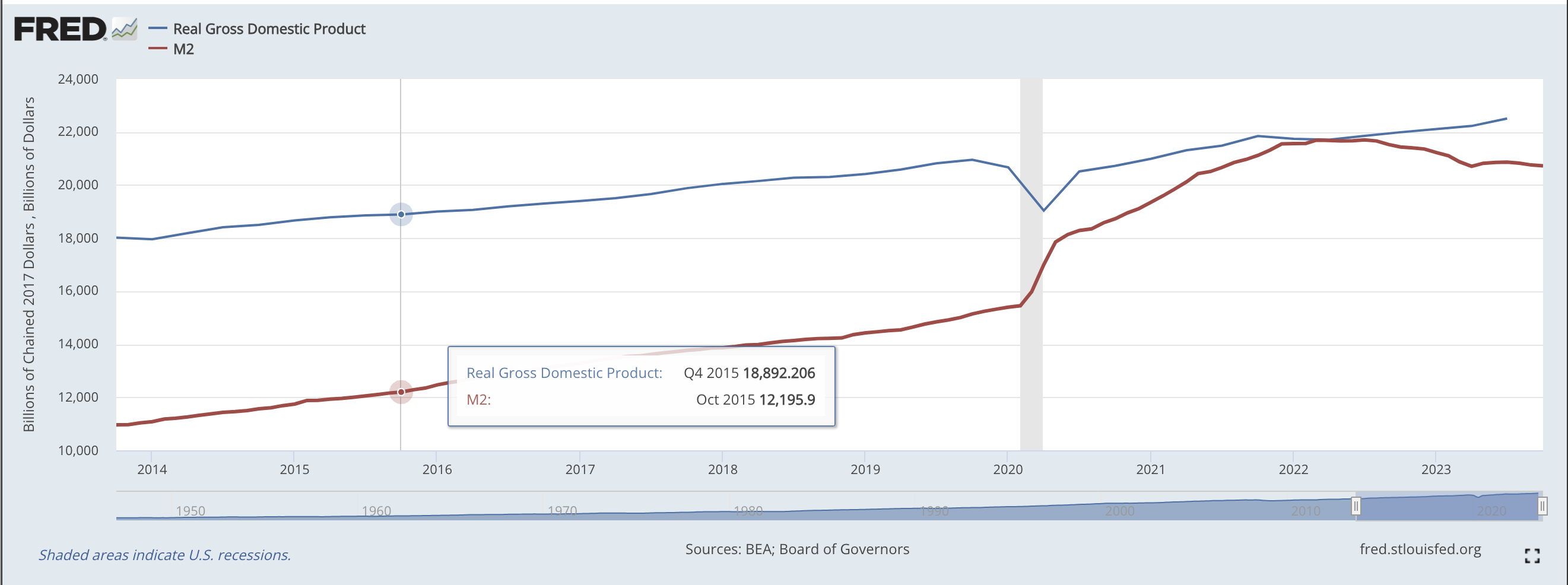 Anyway, It is entirely possible that the reduction in M2 will lead to a price decrease. Alternatively, it could lead to reduction in GDP or a combination of both. Gas has already come down. If P comes down, I would expect it to be seen in leisure goods like hotels and durable goods like cars/appliances first.
