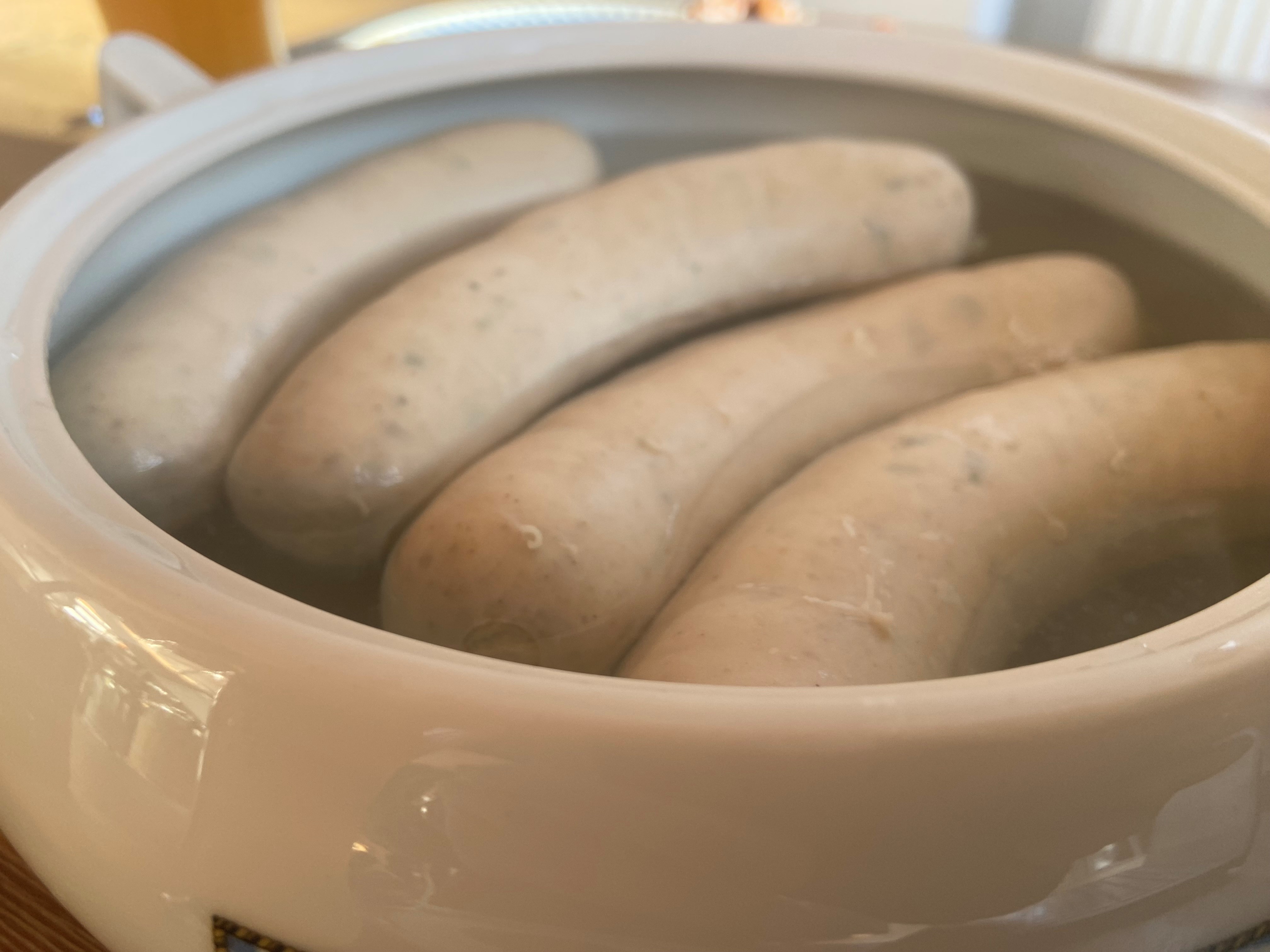 The reason I wanted to delve into the topic of Weißwurst or white sausage in this post is that I heard in New York, one can buy grilled Weißwurst similar to a hotdog, even leaving the skin on, which would be considered a faux pas here on-site. I personally know only a very small percentage of people who eat the skin of the white sausage. Nevertheless, there is a certain art to peeling the white sausage only with a knife and fork without touching it. There's also the tradition of "zuzeln," which means sucking the sausage out of it’s scin, but very few actually engage in this practice.