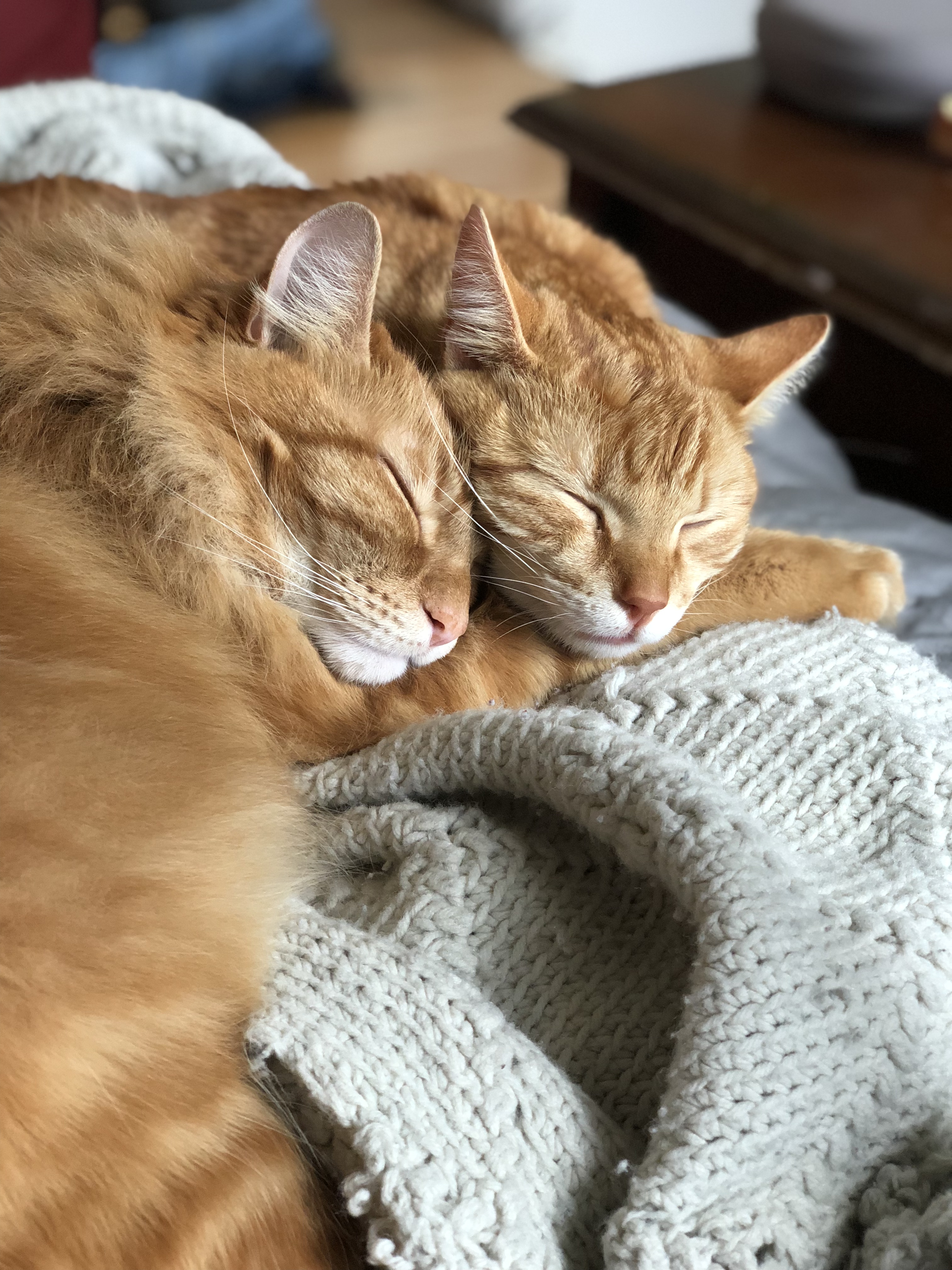 Were they together since they were kittens? I have that situation where I'm "fostering" my deceased mom's two 10 year old adult male cats for the past two years. I'm trying the adoption route, but they need to be adopted together, so it's not easy finding the perfect situation.