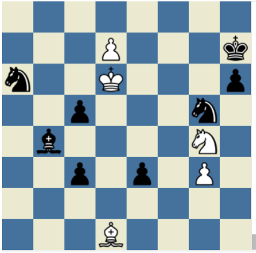 Nf6+, Kg7, Nh5+, Kg6, Bc2+, Kxh5, d8=Qd8, Nf7+, Ke6, Nxd8+, Kf5, e2, Be4, e1=Ne1, Bd5, c2, Bc4, c1=Nc1, Bb5, Nc7, Ba4, Ne2, Bd1, Nf3, Bxe2, c4, Bxf3#