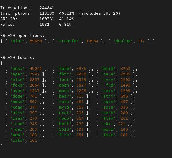 Inscriptions include Ordinals and BRC-20 tokens. Most of them are tokens, but Ordinals take more space.