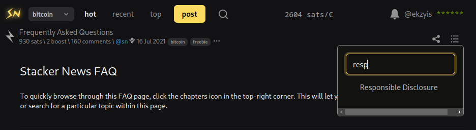 I'm saying I never looked at the source code of stacker.news and I never even visited the repository. If I, for some reason, would find a problem/vulnerability, just by navigating the website I would not know how to report the issue.