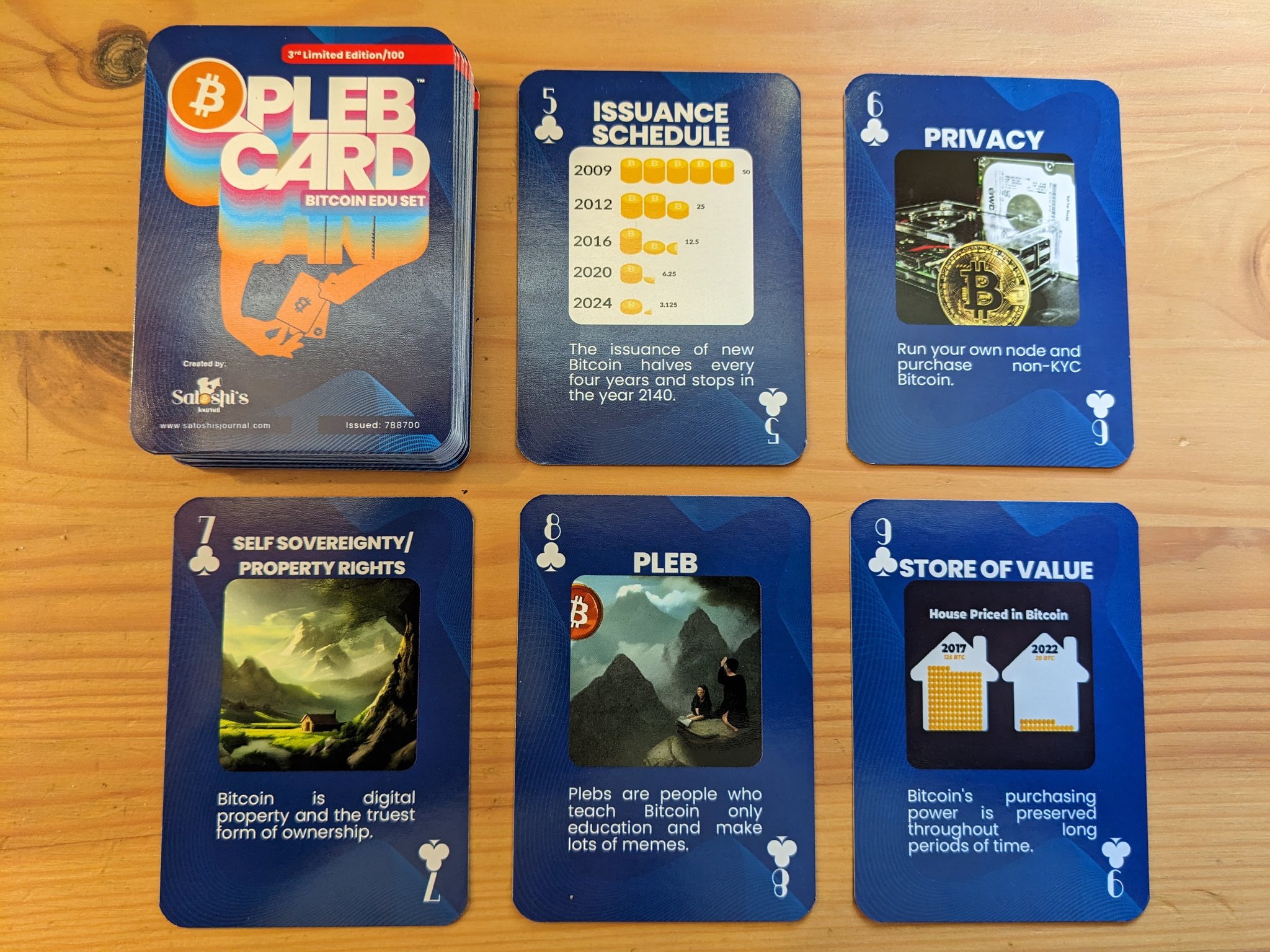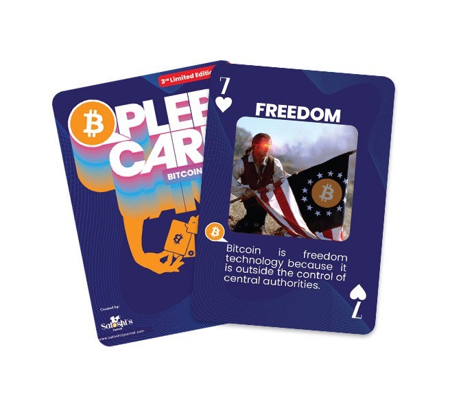 I sell a standard deck of 52 playing cards with a different piece of Bitcoin Education on each card. I sell them for $30 or only $25 if paying in sats. I've sold out of the first and second editions, and only made 100 decks of the third edition. Let me know if you have any questions about the cards! Bitcoiners are loving them! Great orange pill tool for poker night with friends and a perfect way to introduce your family and young ones to Bitcoin :)