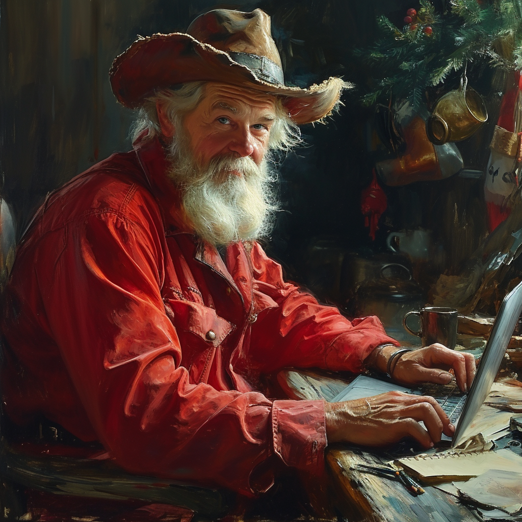 Santa ๐ ๐ป with Cowboy hat๐ค โฆ. quick who has the AI art for this look?
