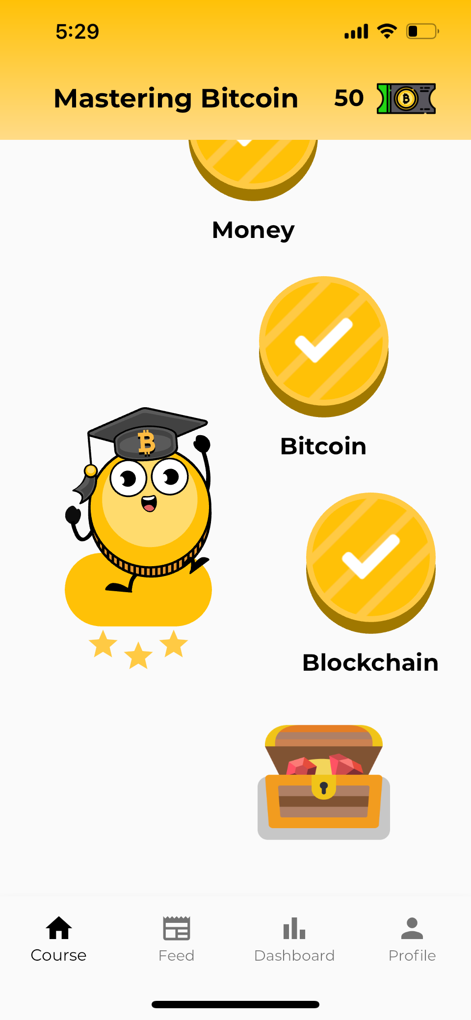 The free version comprises a Bitcoin Beginner course, in which you can open up loot boxes to get lottery tickets when you finish certain chapters.