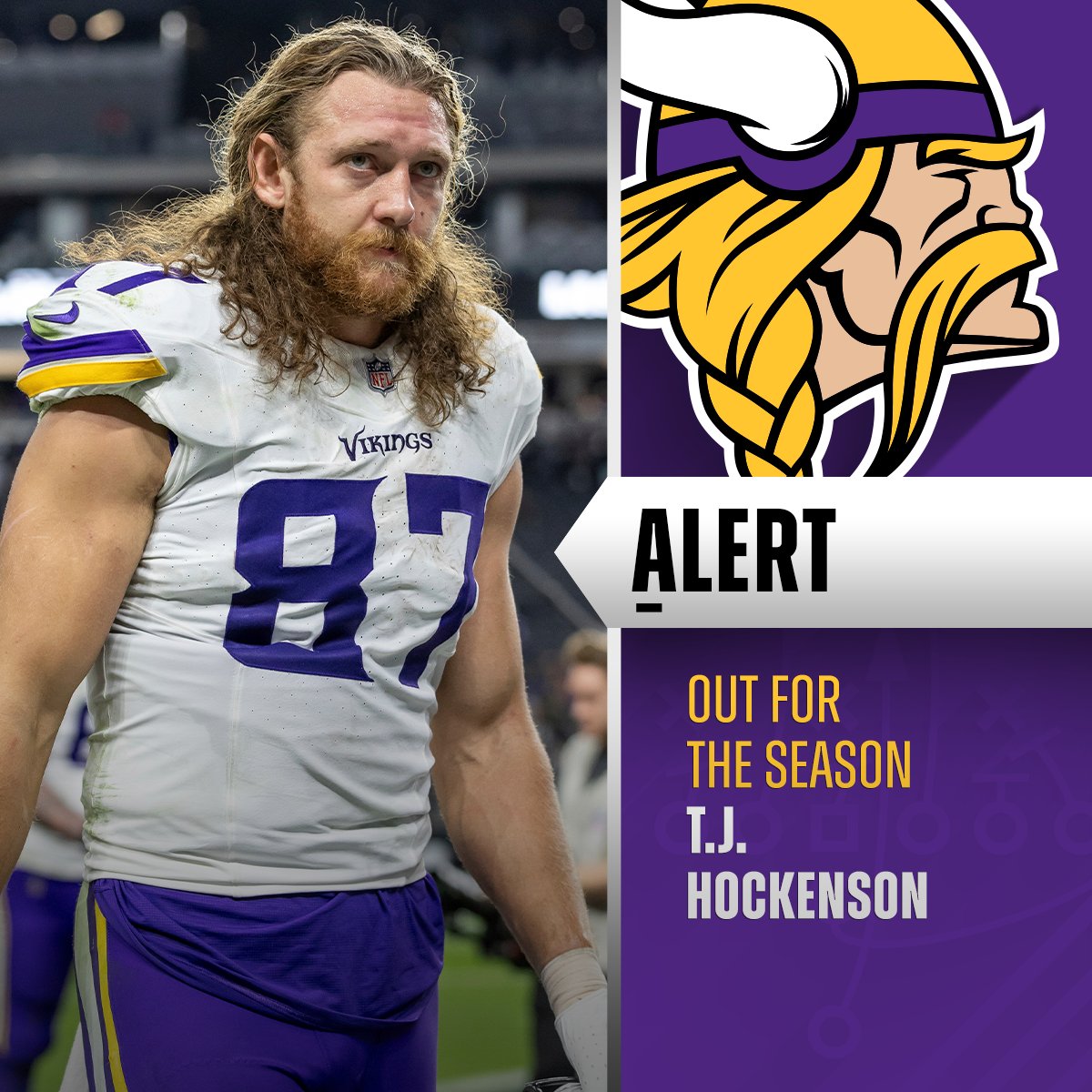 Vikings TE T.J. Hockenson suffered a season-ending ACL and MCL injury.