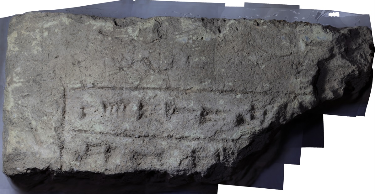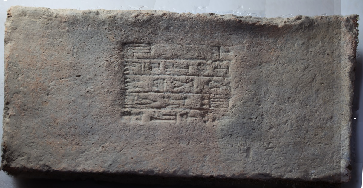 Figure 1: Clay brick bearing the inscription of the Mesopotamian King Senacharib. The inscription says “Palace of Sle[ep], a res[tful] tomb, [the eternal dwelling of Sennacherib, king of the world, king of Assyria.]"