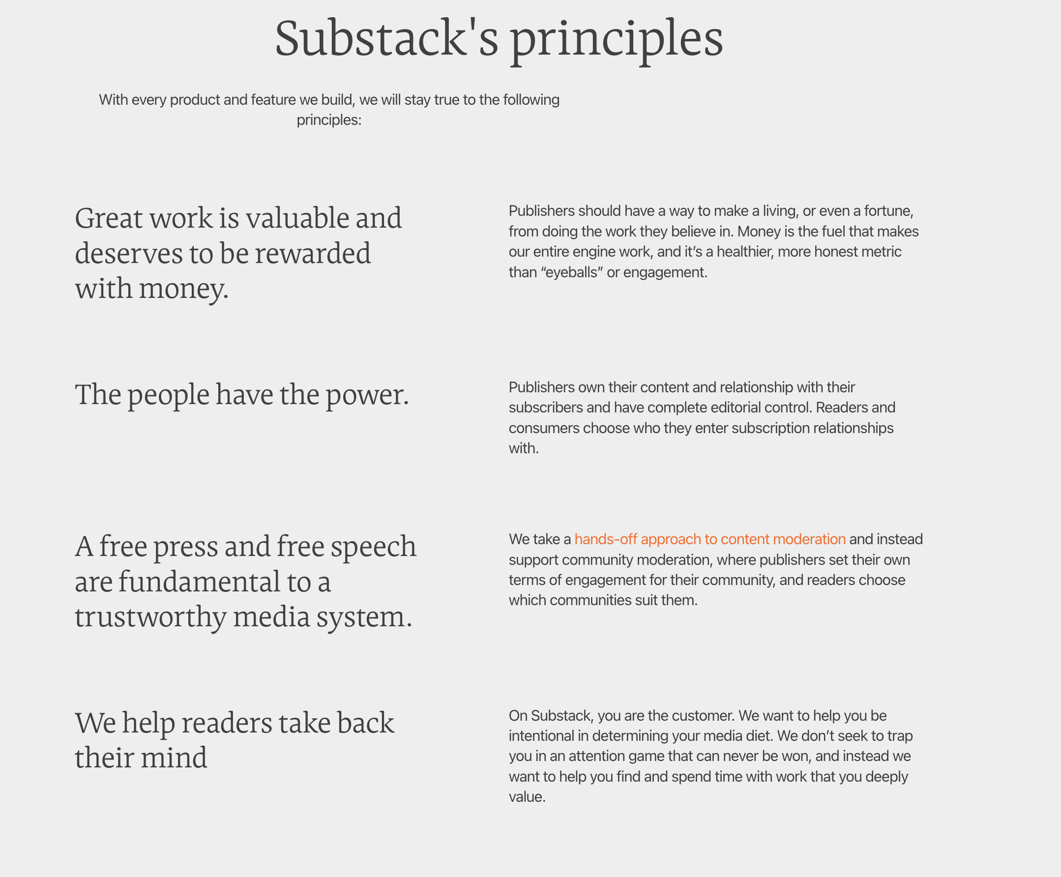 - Substack are acutely aware that if they demonetize or restrict content, that it will lead to the downfall of their business and a mass exodus from their creator platform.