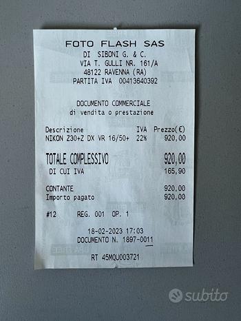 Scontrino ufficiale di acquisto (esattamente quello che c'è in foto)