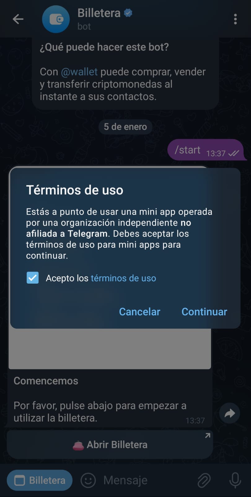 CUSTODIAL WALLET: Although it is official from Telegram it says that a third party is involved.