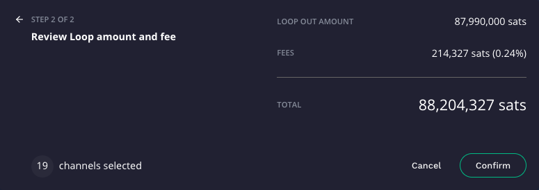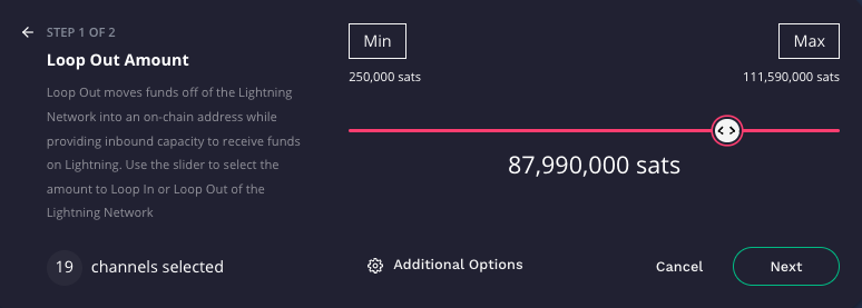 First, we select a channel to LOOP out from, and for consistency, we are going to set it to 2M sats:
