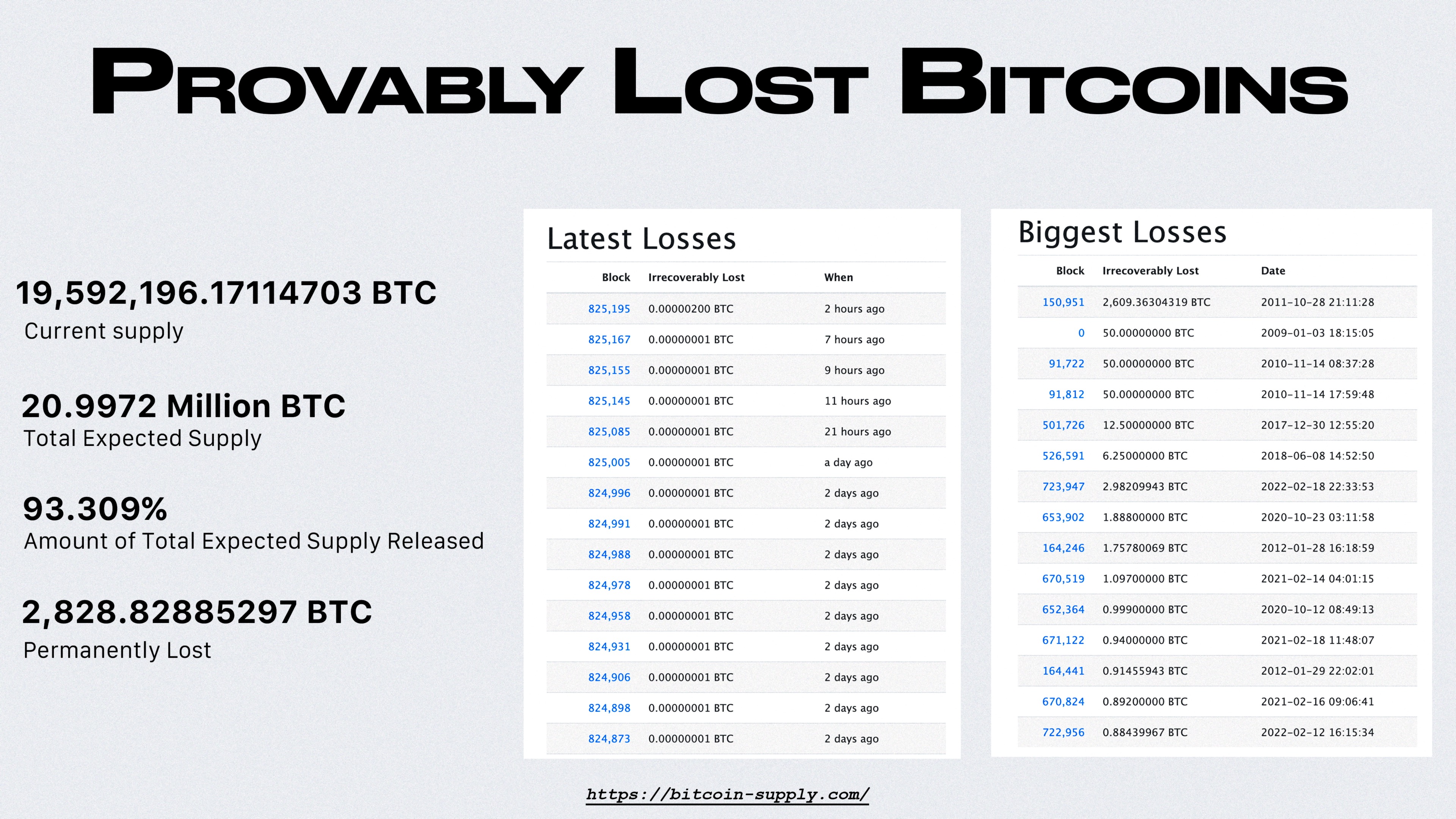 As the blockchain is a public ledger we can freely inspect what coins are unspendable aka lost.