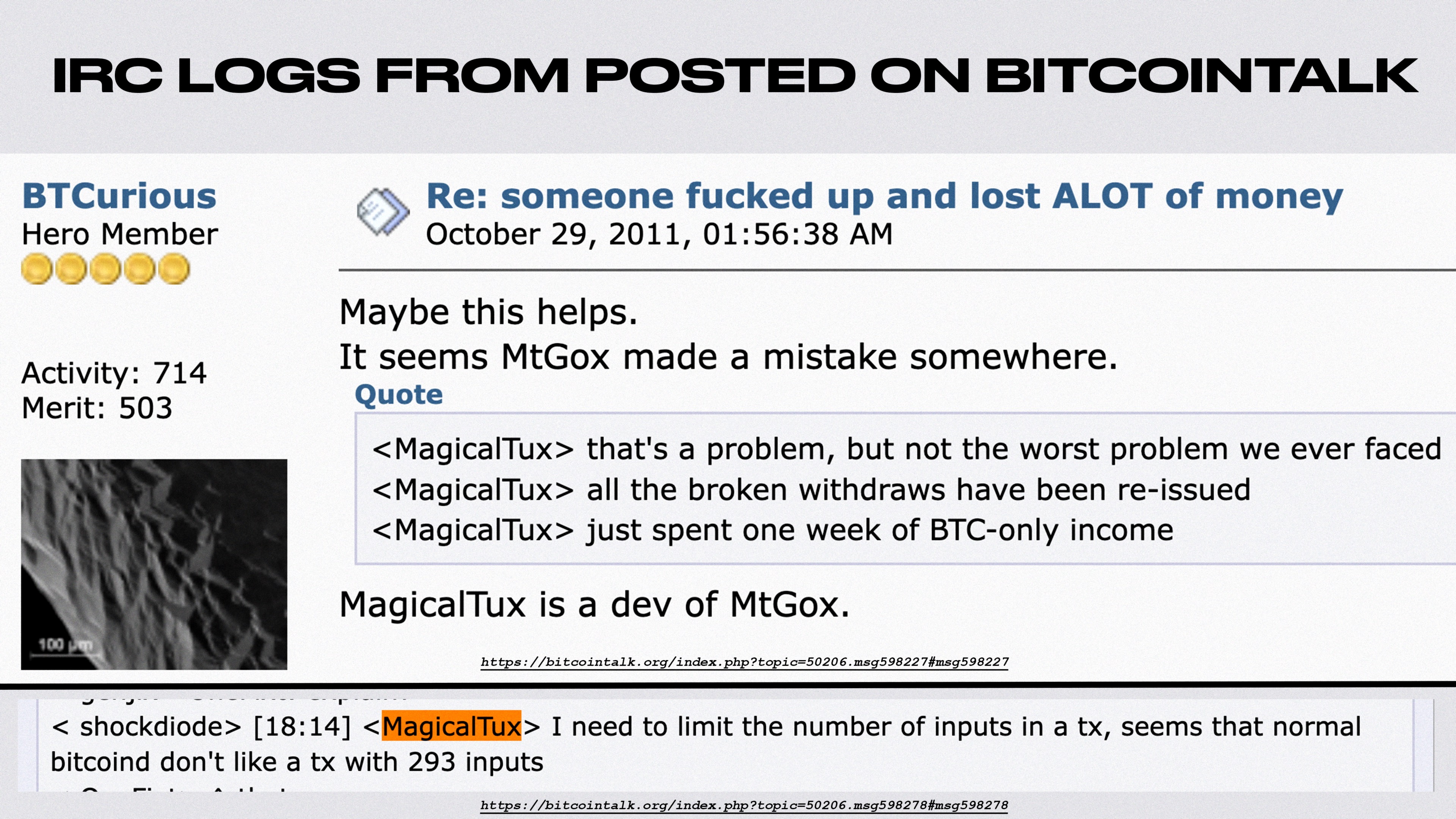 I spent like 5 hours yesterday trying to find some archive of #MtGox, but nowhere to be found on the internet.