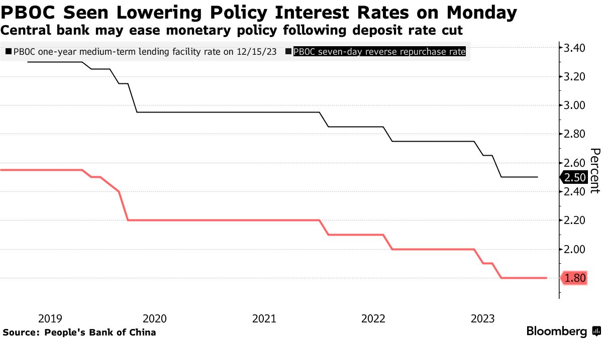 In response to deflationary threats, the People’s Bank of China is poised to execute a 10 basis points reduction in its one-year policy loans, specifically the medium-term lending facility. Simultaneously, a substantial injection of $16.9 billion USD is anticipated, marking a pivotal moment in the central bank's strategy to ensure liquidity and stimulate economic recovery (as Keynesian idiots still think).