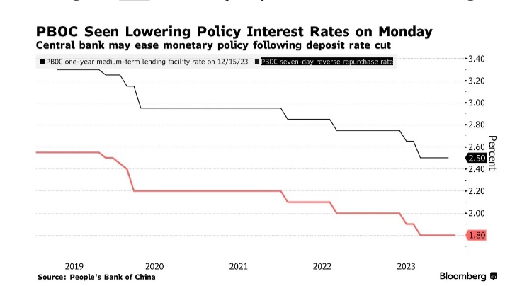 The People’s Bank of China (PBOC) contemplates a strategic move to counter deflationary forces and fortify lending. The anticipated 10 basis points reduction in the one-year policy loans rate, revealed through a Bloomberg survey, reflects the PBOC's determination to proactively support the economy. This impending adjustment, coupled with a net injection of 121 billion yuan via the MLF, underscores the intricate financial dance underway in the nation. Welcome to Fiatlandia! Got some Sats?