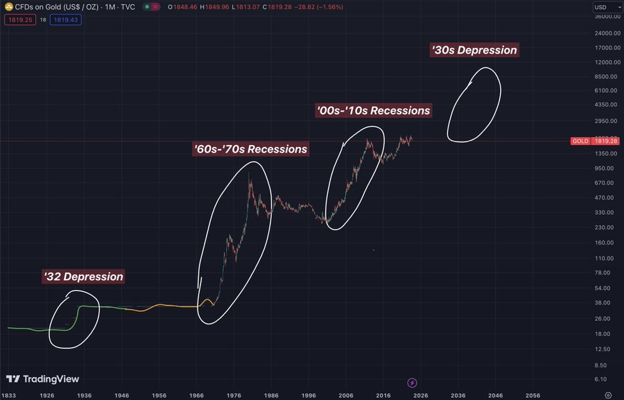At every major recession they aqcuire scarce assets, and Gold was favorite every 30-40 year cycle which gives about 10y of stagflation to stocks.