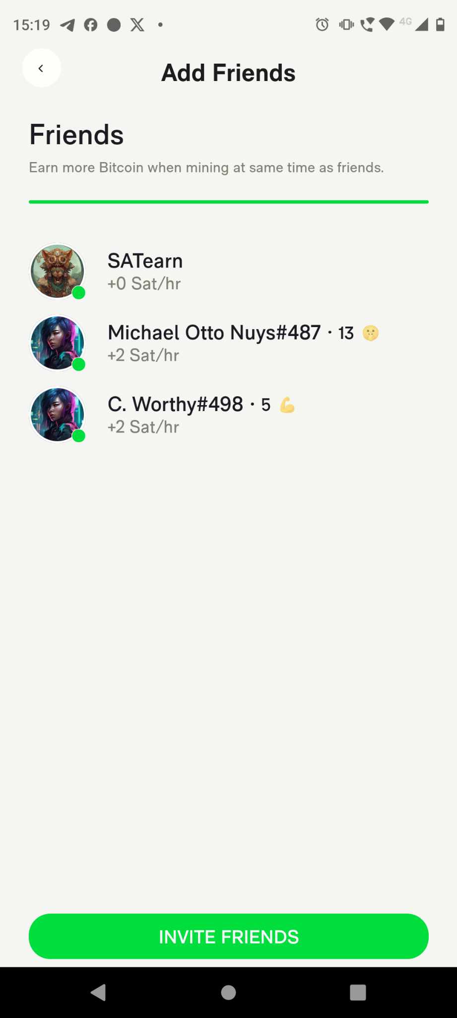 I have 2 active referrals, so my mining rate is 7 sats / hour.