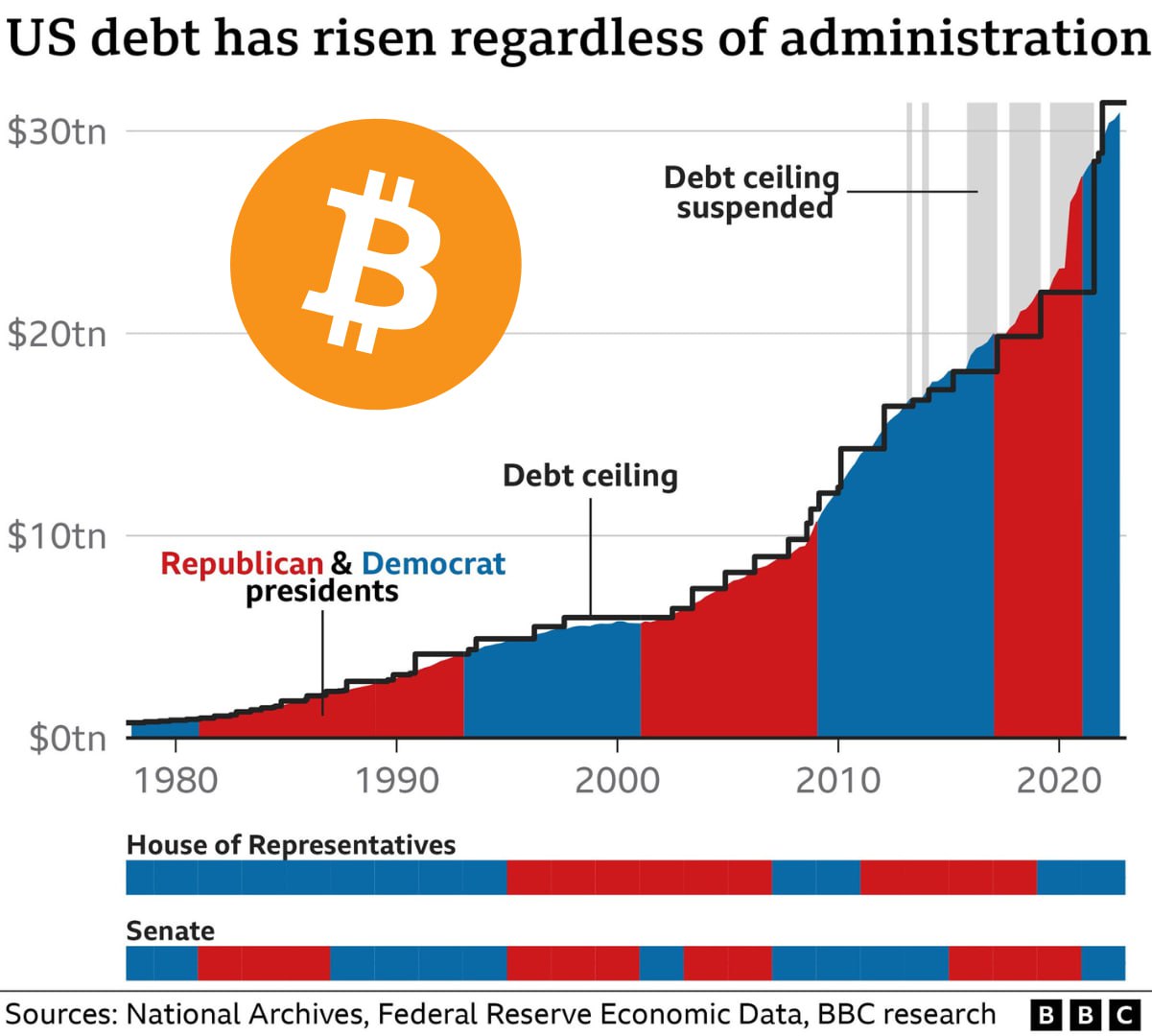 Friendly reminder that debt increases regardless of the administration.neither side can stop or slow it down. But flip it over with the B side! You can opt out with Bitcoin!