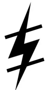 the idea is obviously a lightning bolt, with a division symbol thrown in as the dots.