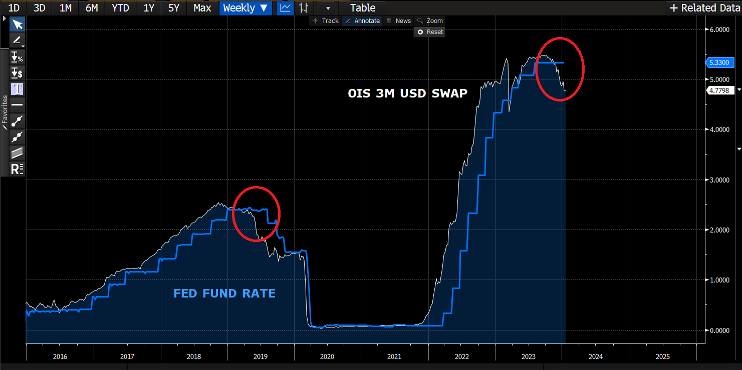 The markets are not pricing this possibility in, whatsoever. They’re still buying the “higher forever” narrative. I think a rate cut is coming in or around March, even though they’re trying their best to make us think otherwise.