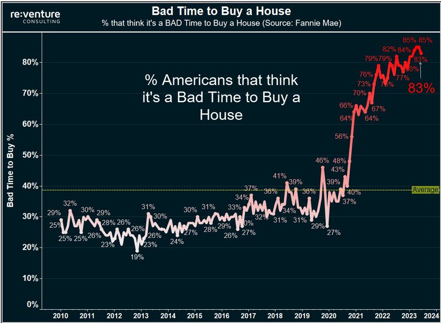 Turnes out an astounding 83% of Americans currently think it is a bad time to buy a house, according to Reventure.