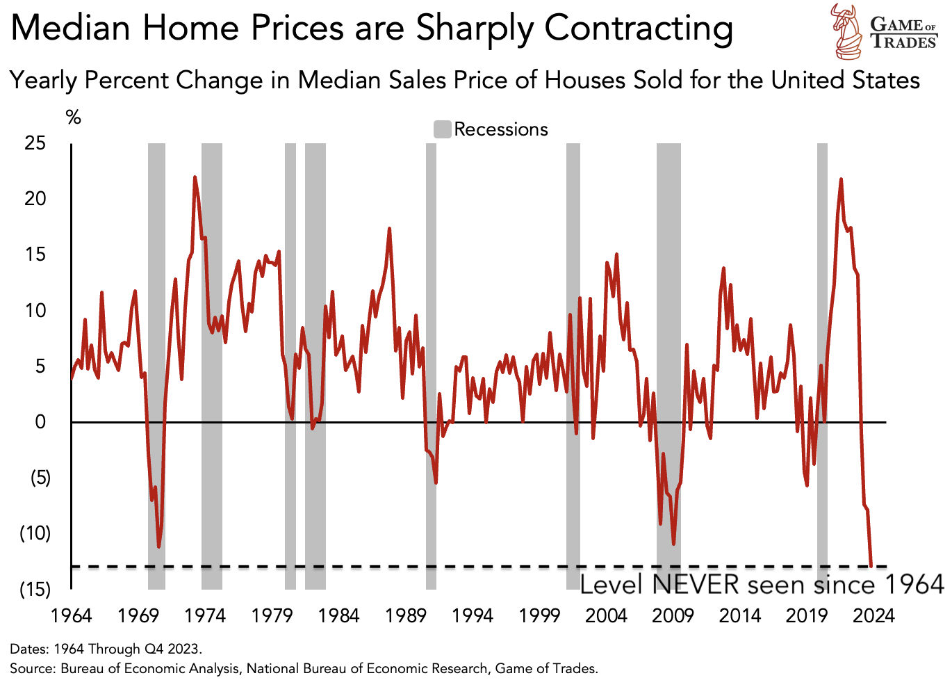 More cracks in the surface. Median home prices are now contracting at levels NEVER seen since 1964. What’s next?
