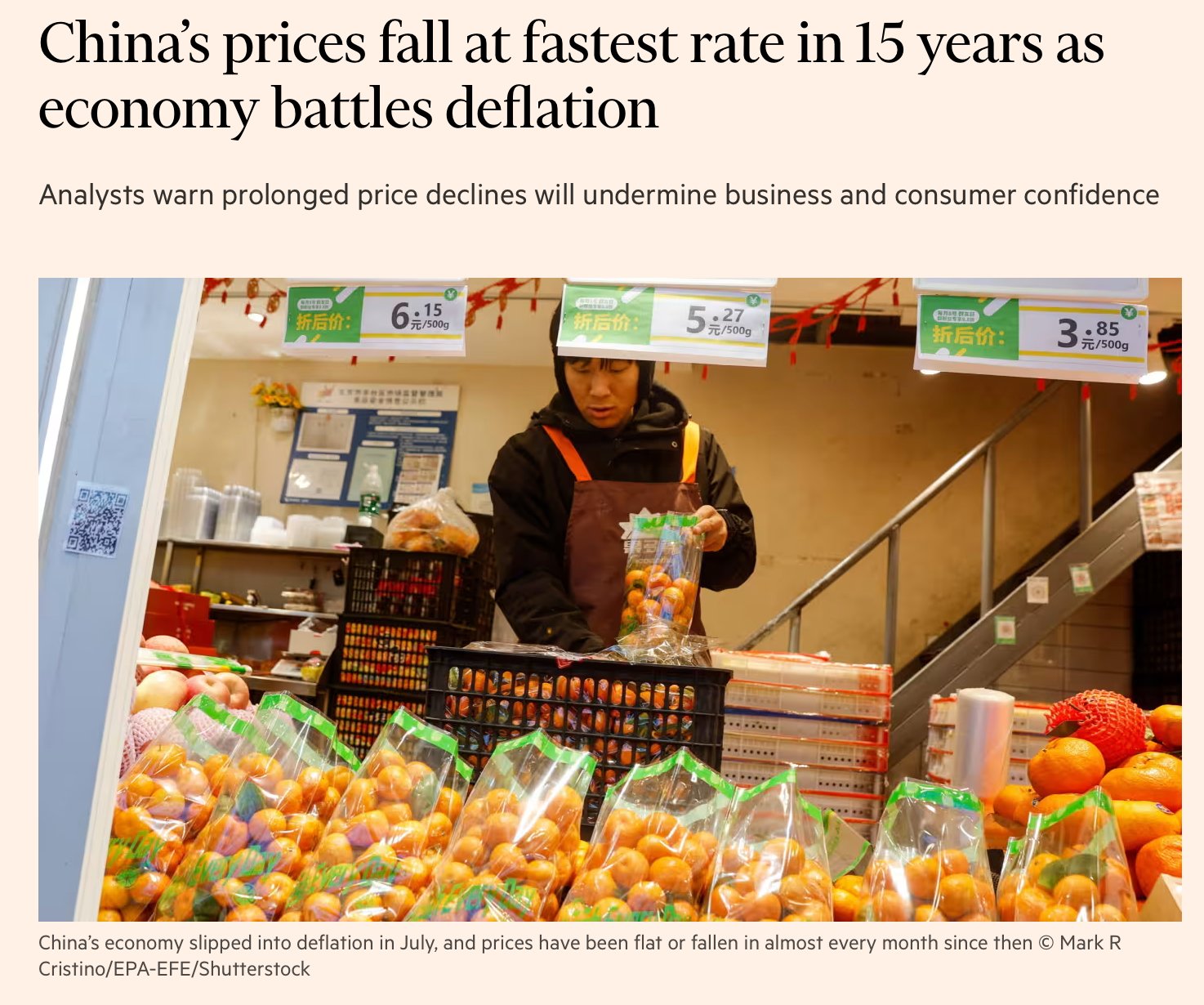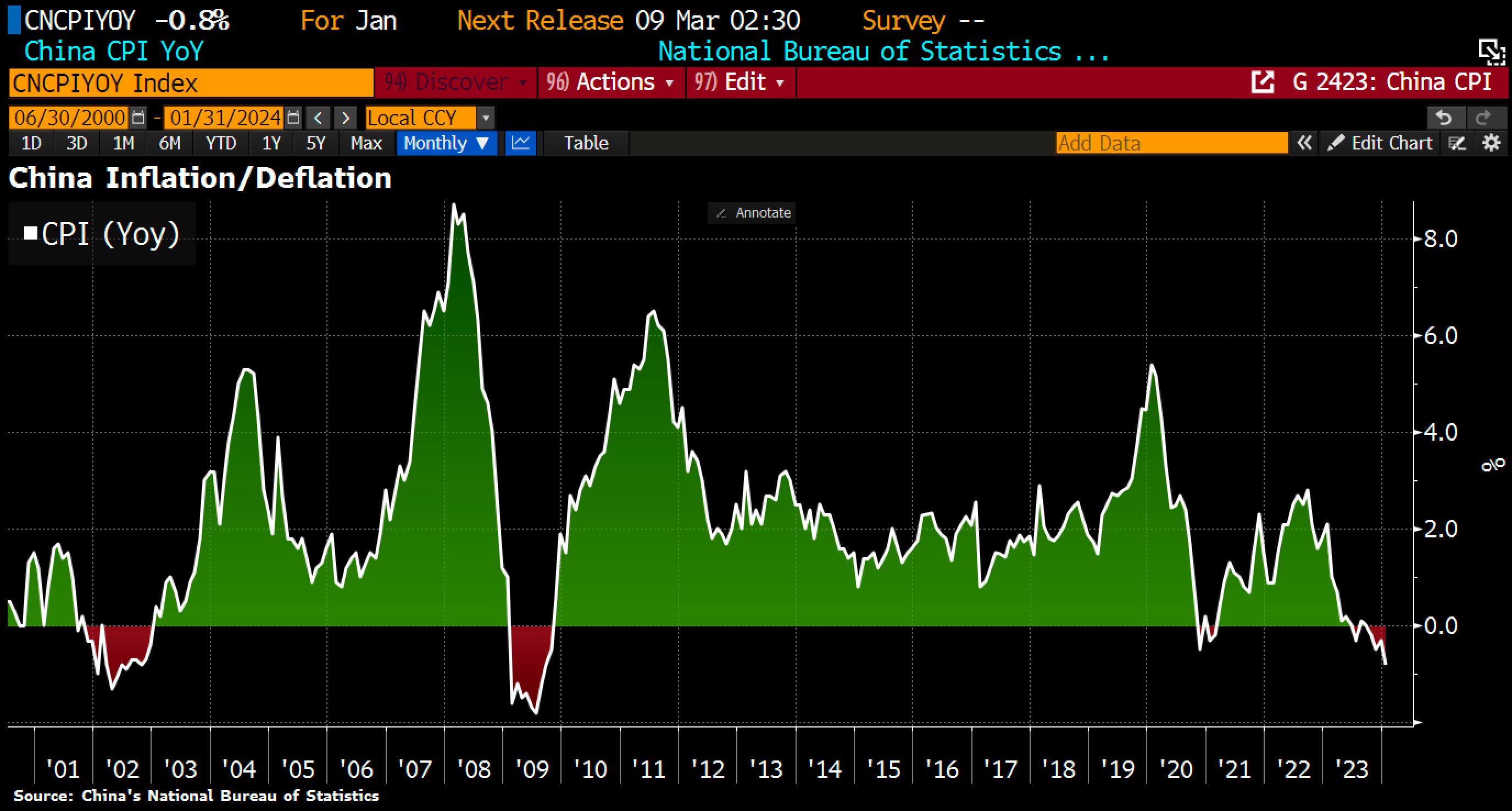 This will be a difficult balancing act for the CCP commissioners: after the ongoing stock market crash, the inflation rate also remains in negative territory. This points to a weak economy. the deal has always been: we control you right into your pockets, in return we ensure excessive growth and prosperity. yes, let's see where this ends. the current figures: