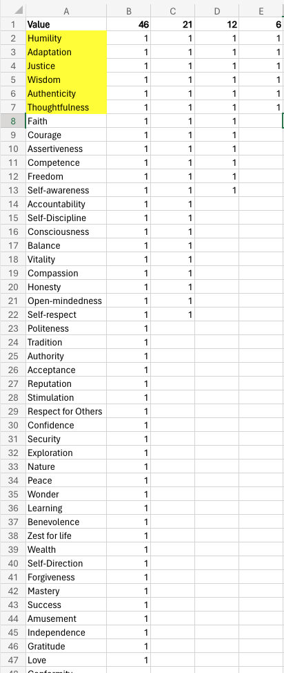 Thanks for your feedback, and for sharing your process using a spreadsheet. Really smart. It's also good practice to repeat the exercise now and then to validate your core values or maybe find some new ones as an outcome of a ever-changing life