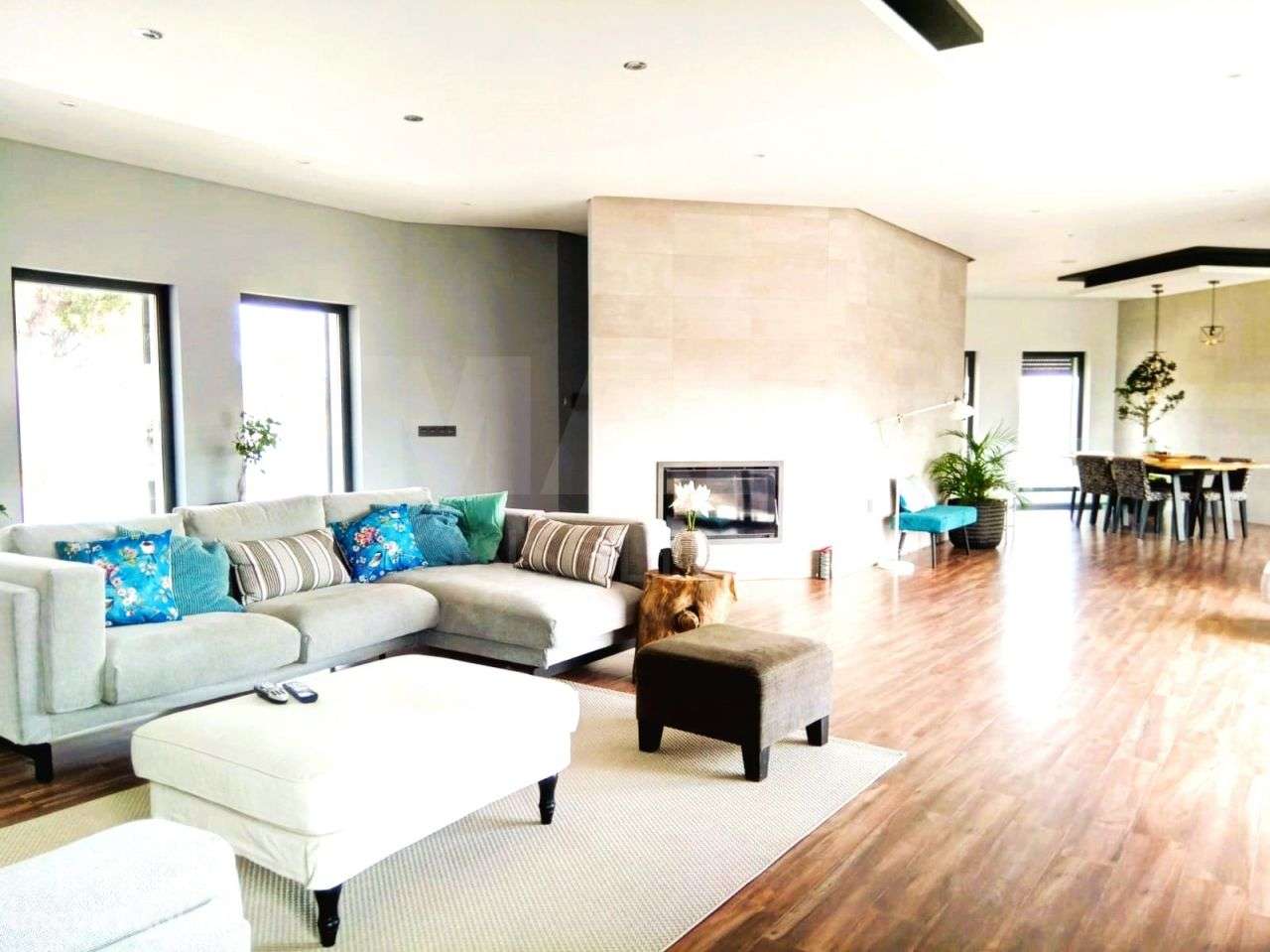 Composta por hall de entrada e sala comum com lareira, cozinha totalmente equipada com eletrodomésticos embutidos, varanda de 75m2 que permite acesso a um anexo exterior que inclui arrumos, casa de banho e cozinha exterior com churrasqueira. Na cave existe uma sala de estar com escritório, uma lavandaria e um ginásio. Excelentes áreas, muita luz natural. Jardim exterior com total privacidade, diversas árvores de fruto, furo (para regas exteriores) e instalações preparadas para piscina.