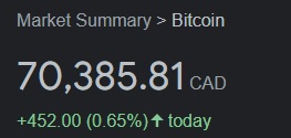 The cost of a whole bitcoin (CAD) today? (a mere year and a half later)