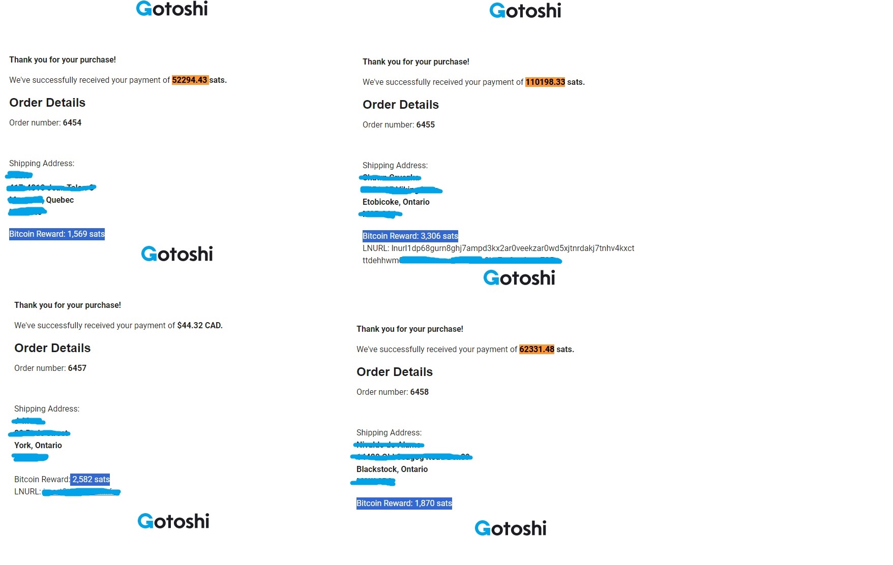 So the way to circumvent a collapse in revenue/profit, Gotoshi Direct has had to pivot and accept fiat to keep the lights on as we are a for-profit business, but there is a caveat to that as we act as a fountain and disperse sats on every purchase as rewards to buyers that can then be used to hodl or for future purchases, thus continuing to stay within the wheelhouse of fueling a circular economy. (This only applies to Gotoshi Direct; all vendors on the site are still strong-armed into accepting Bitcoin only by yours truly.)
