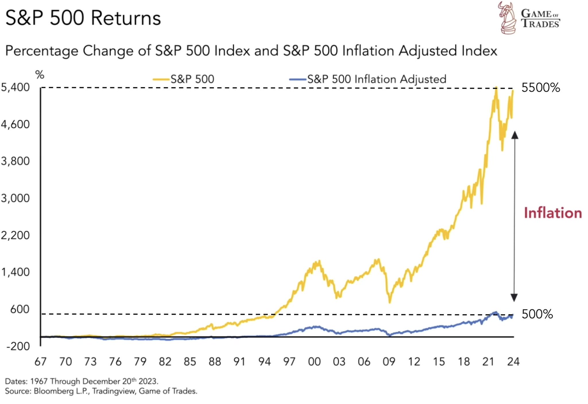 This is shocking, yes they really are fooling most people! The market is up 5000% + since 1970. But ONLY 500% when adjusted for inflation. Inflation and peeling back the layers got me into Bitcoin and now I’m here for good!