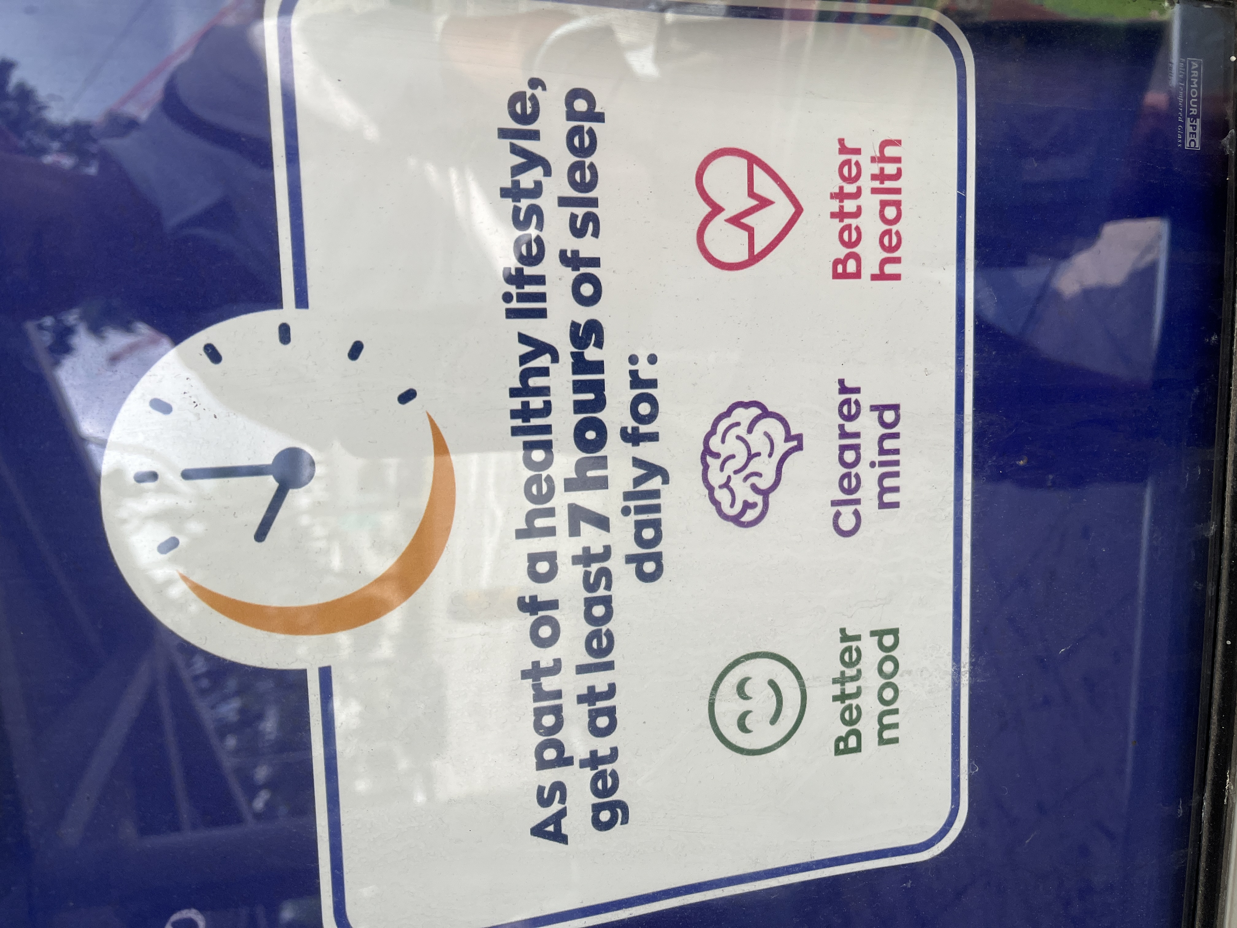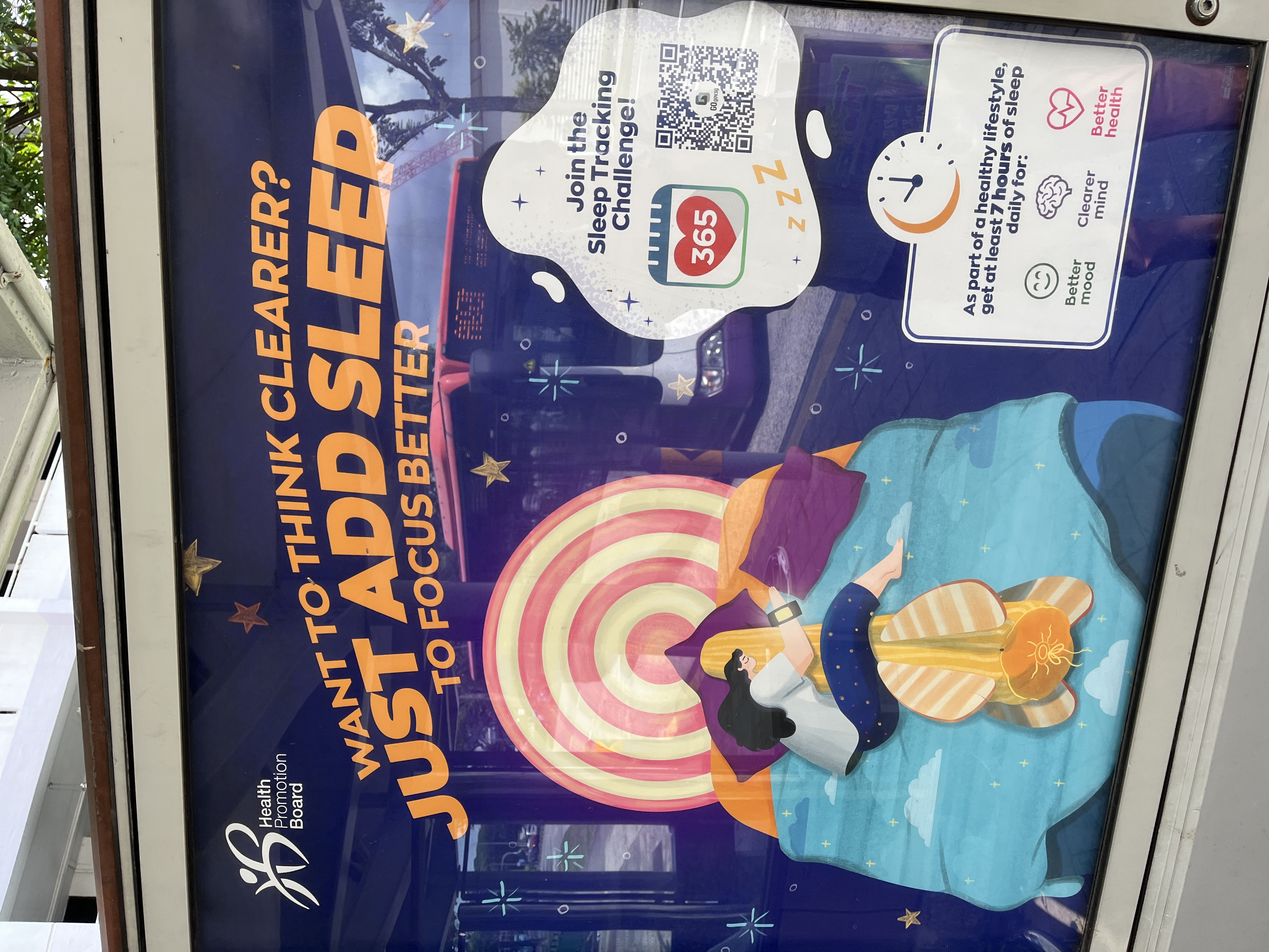 Taken at a bus stop in Singapore. Did you know that Singaporeans are the second most sleep-deprived people in the world?