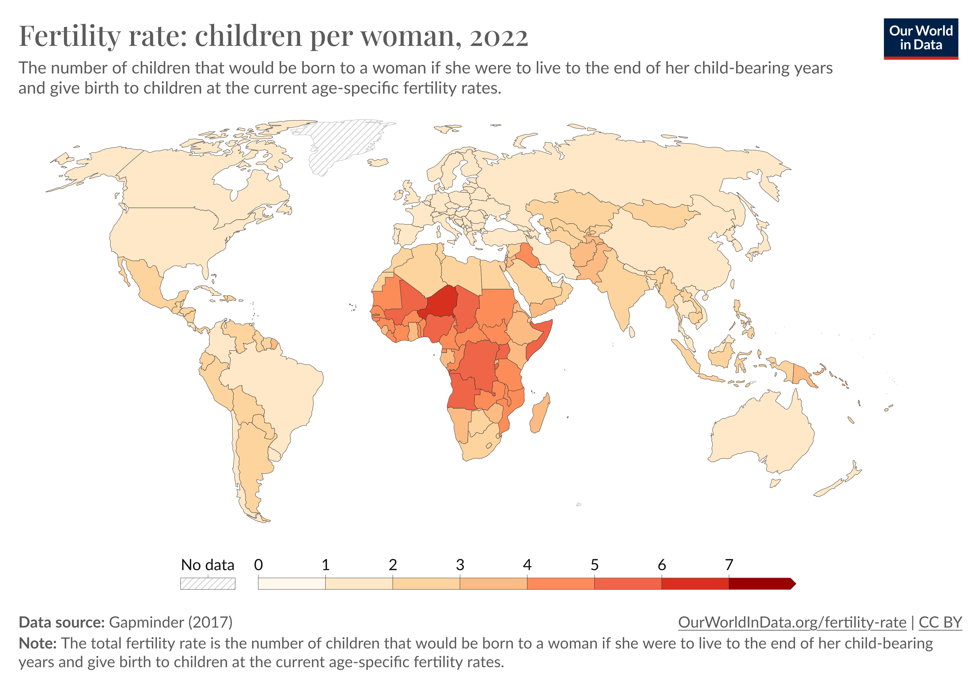 Subsaharan african countries aren't rich yet. But you can already see how Moroccos fertility is lower than Malis. Even smaller differences like Kenyas fertility rate is lower than Mosambiques. It's almost frightening how good this correlation holds.