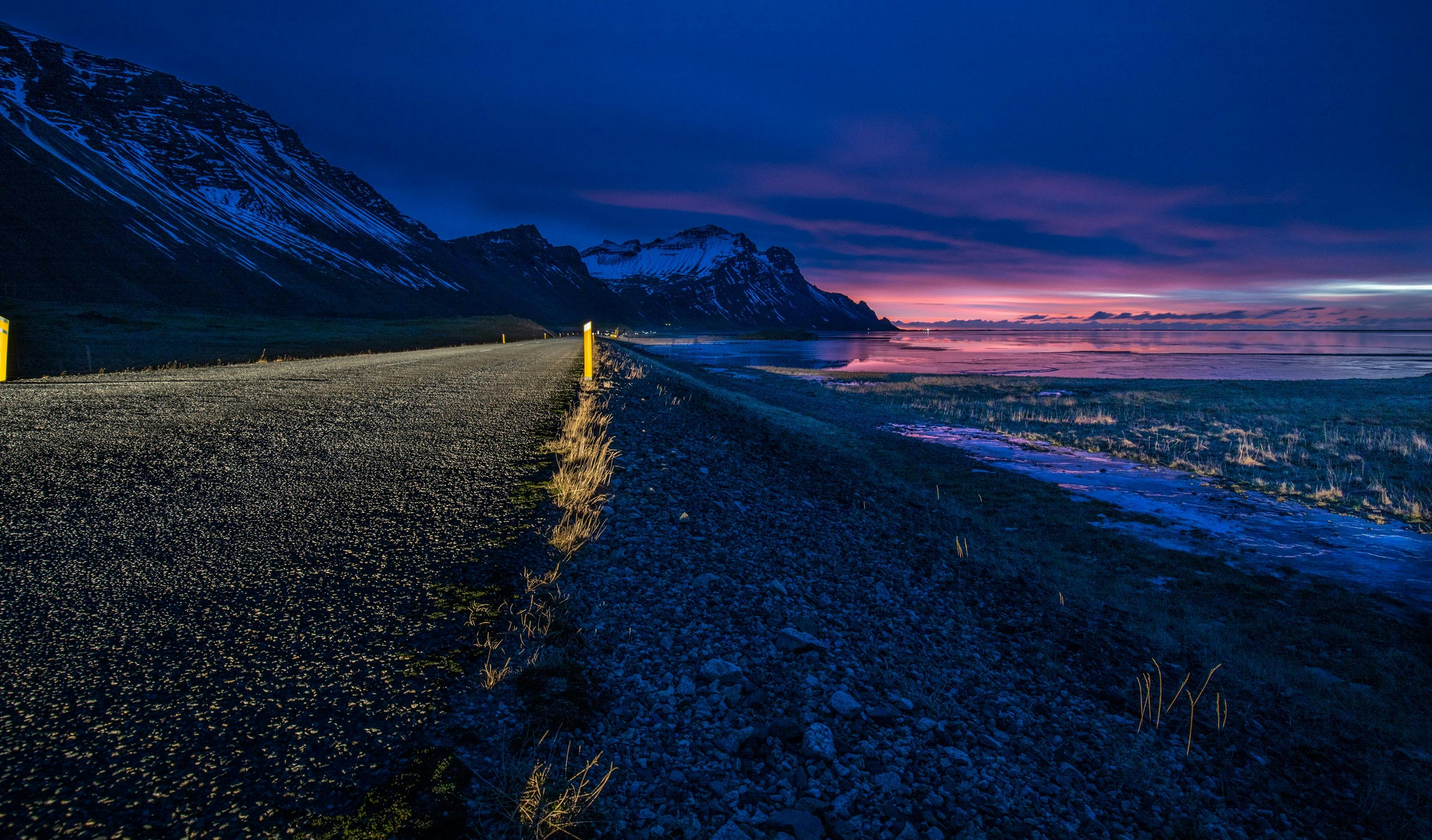 Gray Rocky Road At Night