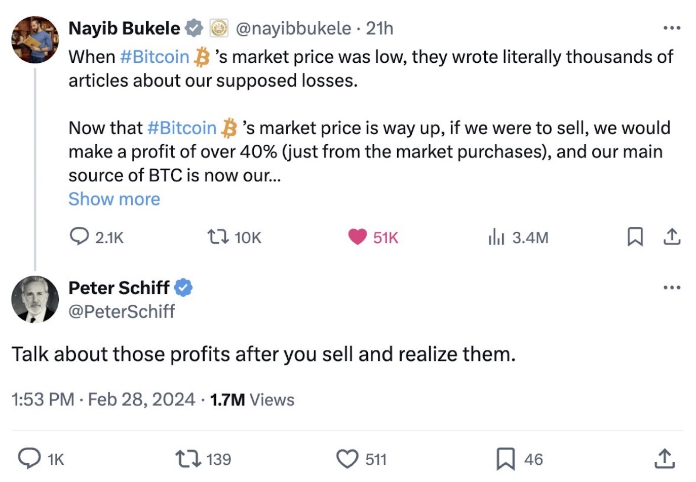 Just like they "own" gold. Like Saylor, he says some right things but many I disagree with. I believe he said he would be moving his holdings into the ETFs before they were approved. My short summary of him is he's a believer in the state and status quo. He doesn't believe we need bitcoin to be a medium of exchange. He's fine with PayPal and Venmo for that. I think he's going to be right until he isn't. I don't think he believes the US financial system will eventually collapse. He's wrong about that. In the short term he may be right.
