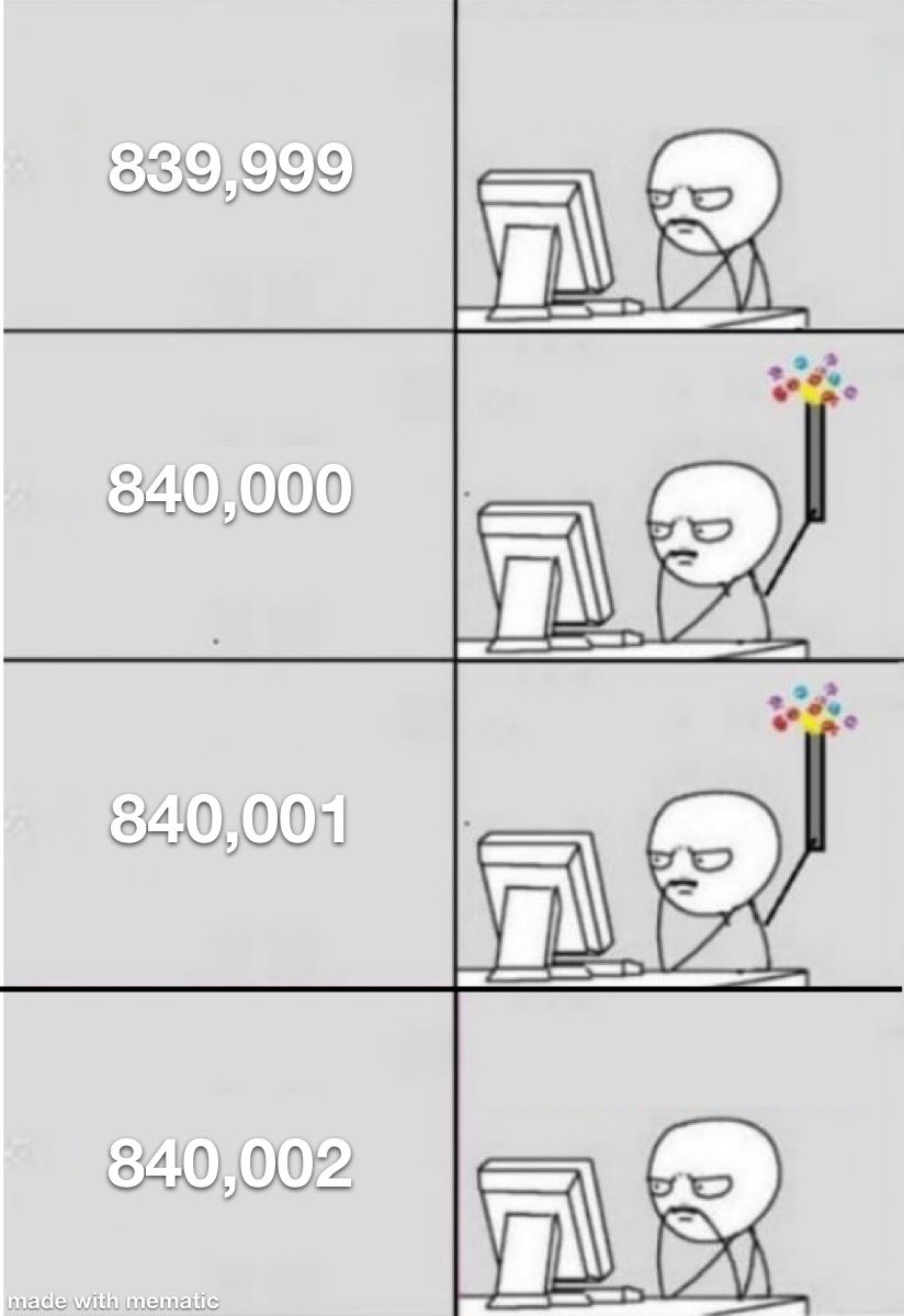 Just the halving blocks, and celebration isn’t really applicable, more so noteworthy