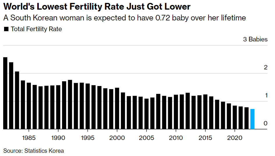 One big problem is these countries donβt have a 40 hour work week. Too many workaholic averaging more than 60 hours per week. Not much time left over for reproduction and childcare.