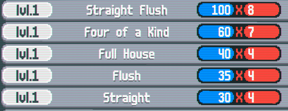 There are also some secret poker hands you can unlock if you're lucky, like a Flush House - a suited full house.