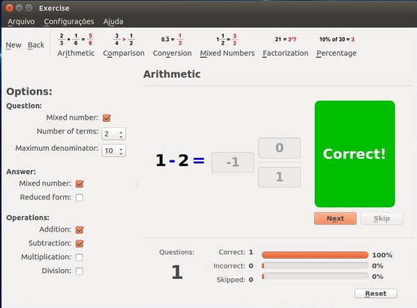 Several exercises are available and you can use Learning Mode to practice fractions. The program checks the entered data and provides a result.