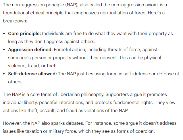 Fun fact for bitcoiners: some refer to the Non-Aggression Principle as the Zero Aggression Principle or ZAP.