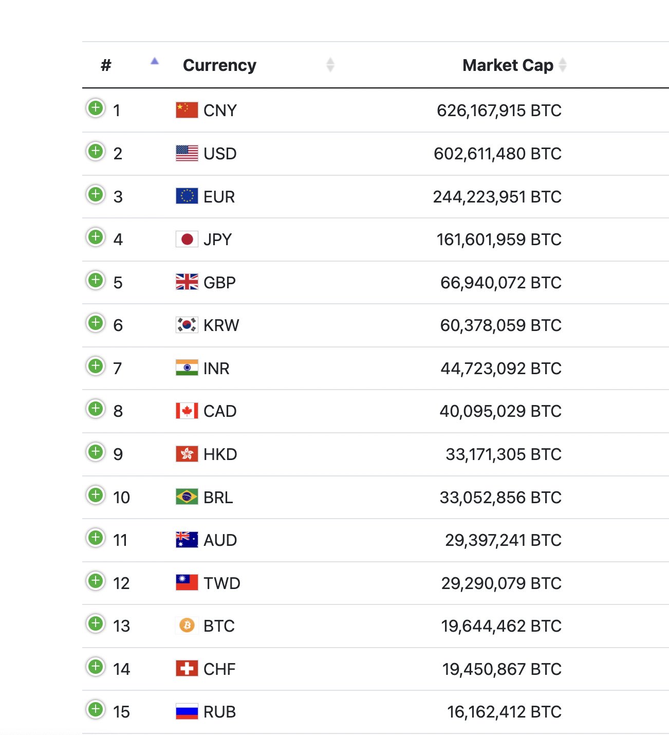 I love that the market cap for all of these are listed in bitcoin!