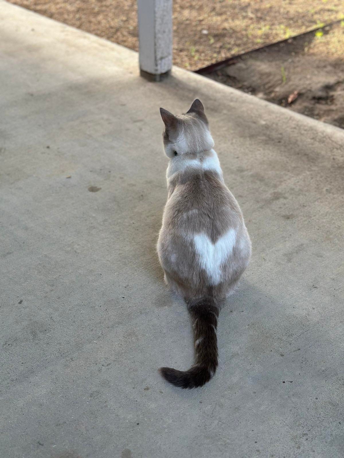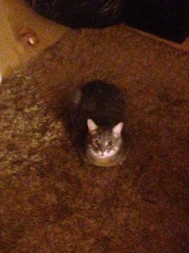 We found here as a kitten alone on the road passing through some orchards in the country near where we live. She plays hard then sleeps hard. Easily bored. Loves to sleep in my office while I'm working.