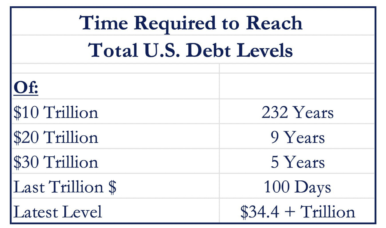 The trip from $33 to $34tn in debt was a short one, requiring only 3 months, from September to December of 2023, Strategas has calculated.