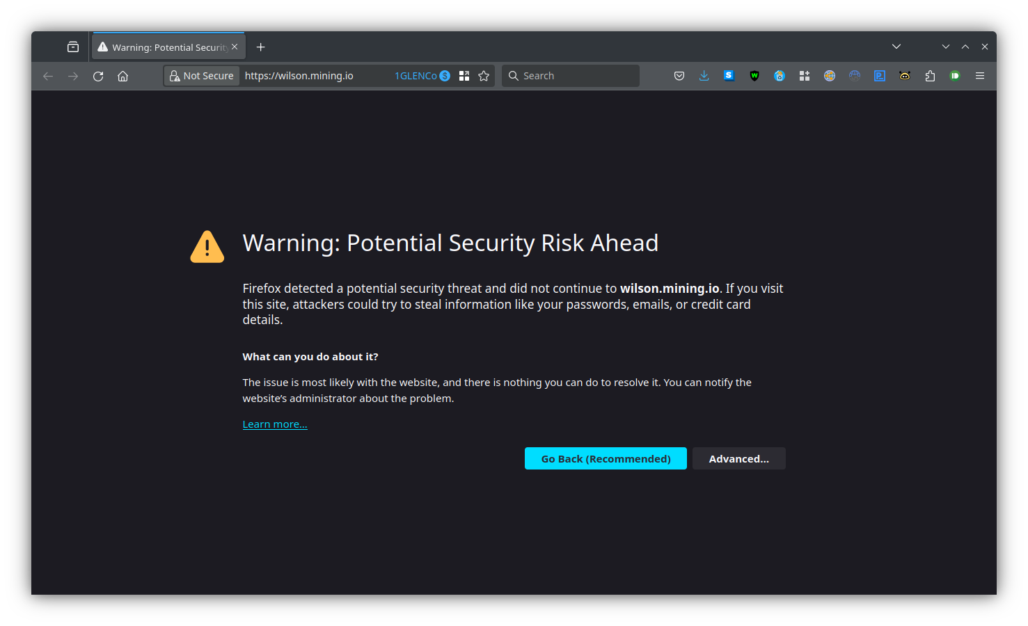 I presume you typo'ed the URL and meant https://wilsonmining.io/ instead?