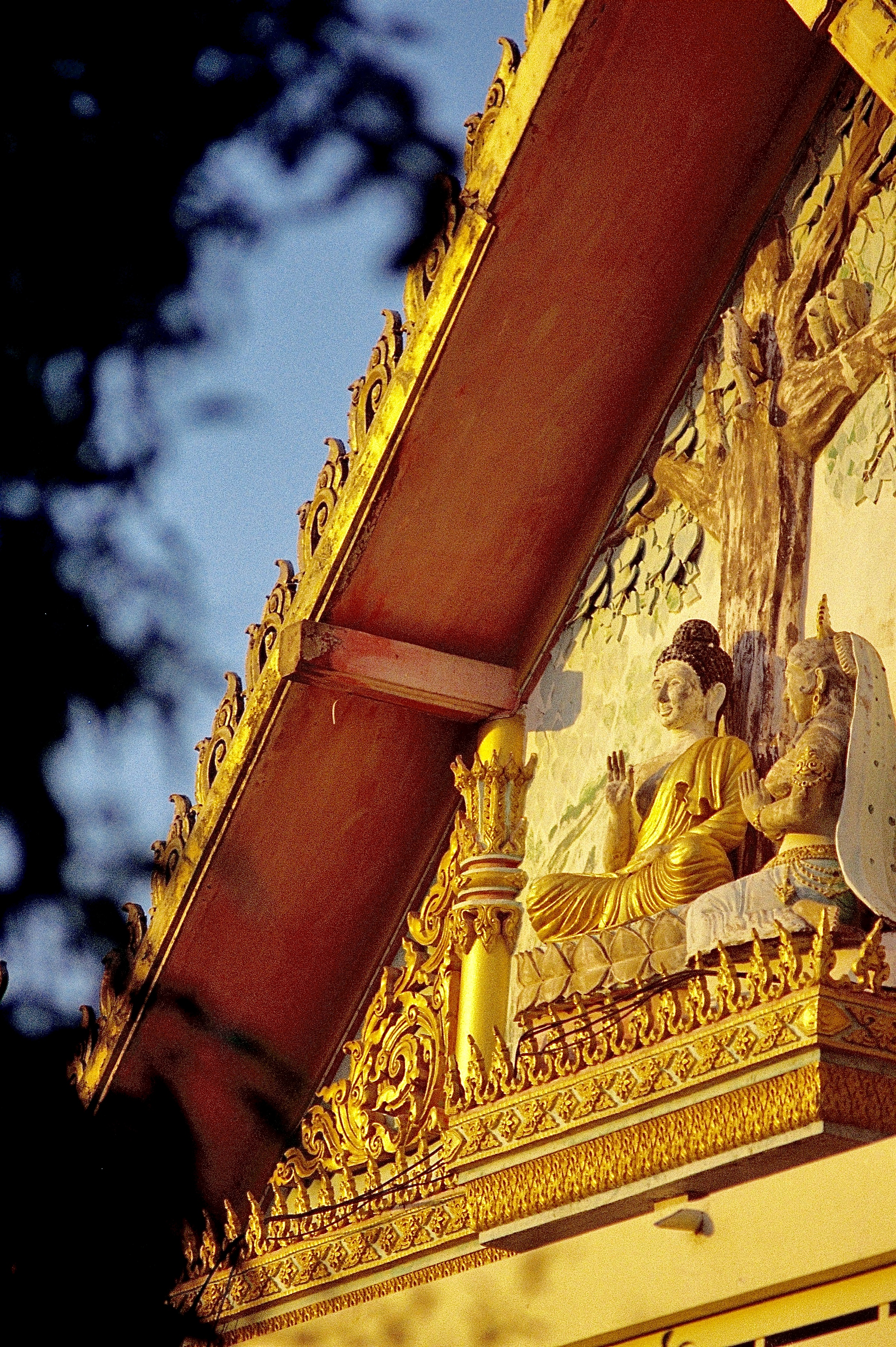 Thanks, old Nikkor 180/2.8 from the ground, I used the trees to establish a dark contrast with the Buddha statue in the sun :-)