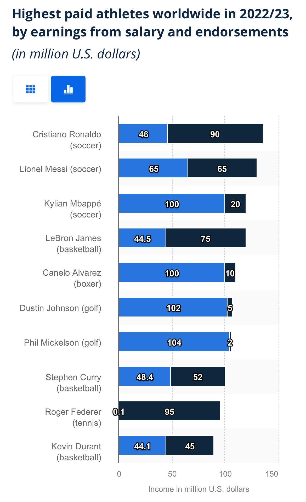 Incredible figures. Also it is amazing how much Roger Federer still earns even though he is not playing tennis anymore.