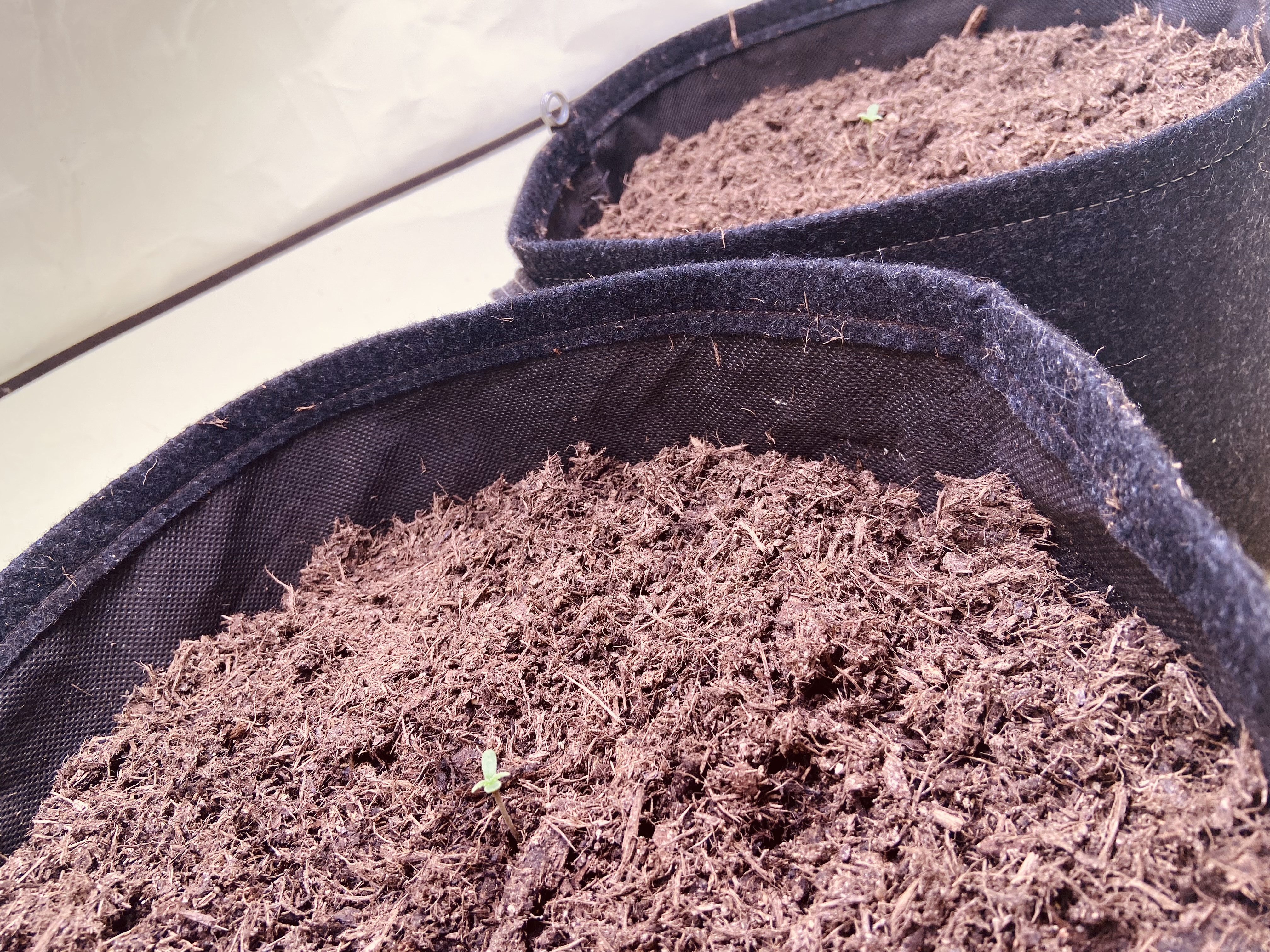 Four days ago, I planted 5 seeds of Critical AK58 as automatics to germinate in the soil. Now, the first 2 have sprouted, and I've transferred them directly into the grow box. Alongside organic soil and a bit of water, they're currently receiving only light. I'll keep you updated as things progress.