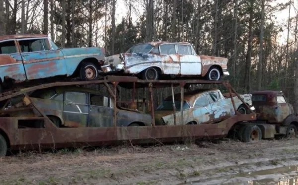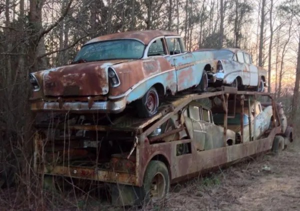 This story is quite mysterious, a 1950 Chevrolet truck adapted for transporting cars, called a stork, was found in the middle of a forest with 4 old cars. The most interesting thing is that no one knows the origin of these cars, when they were abandoned there or why.
