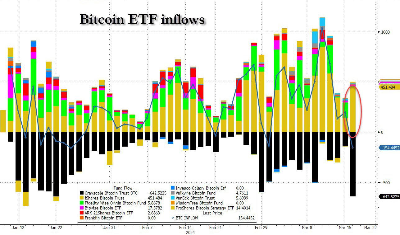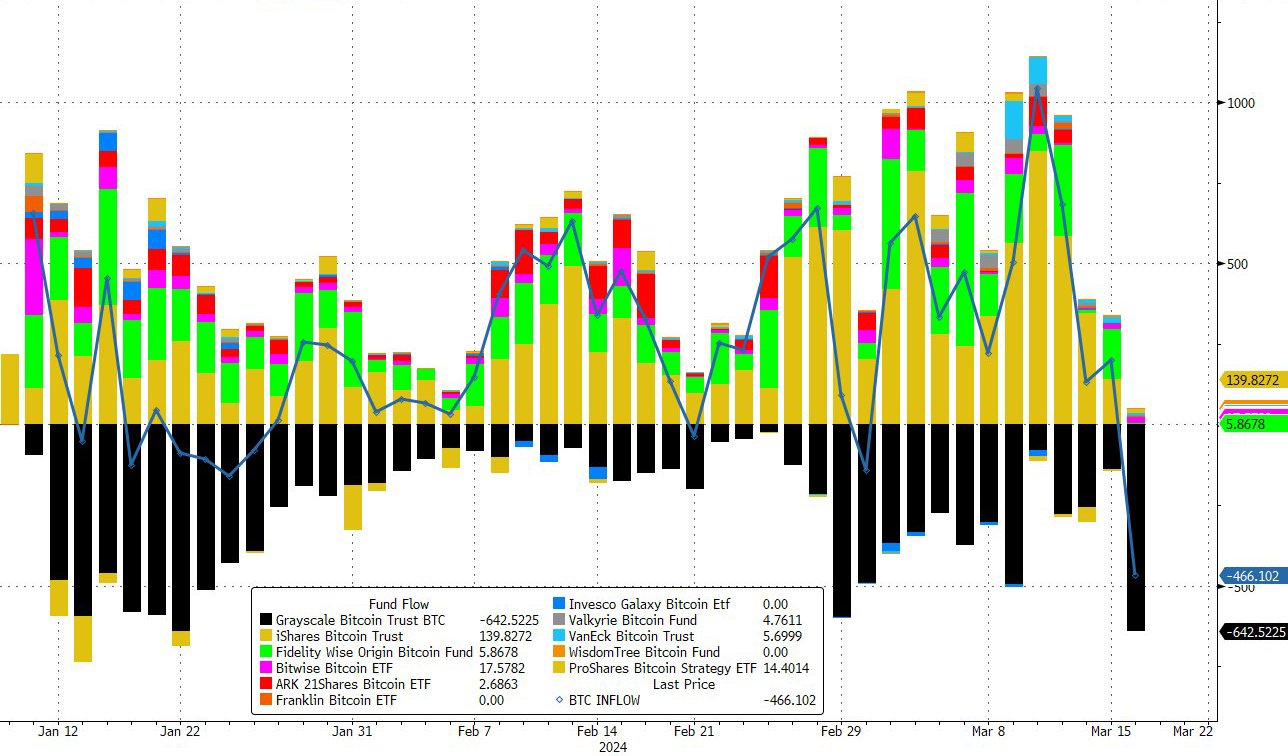 Bitcoin ETFs: biggest outflow from Grayscale yet. Nobody else selling even during market rout days.
